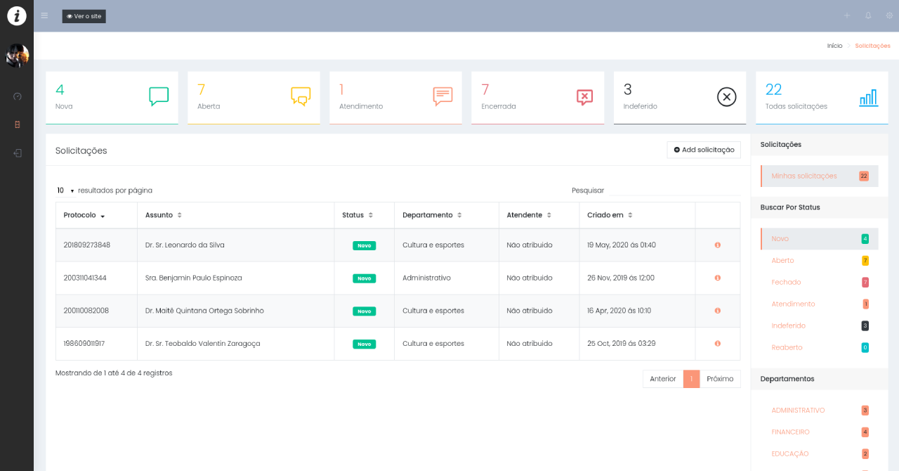 usando o seu número de protocolo ou um dos filtros do sistema;