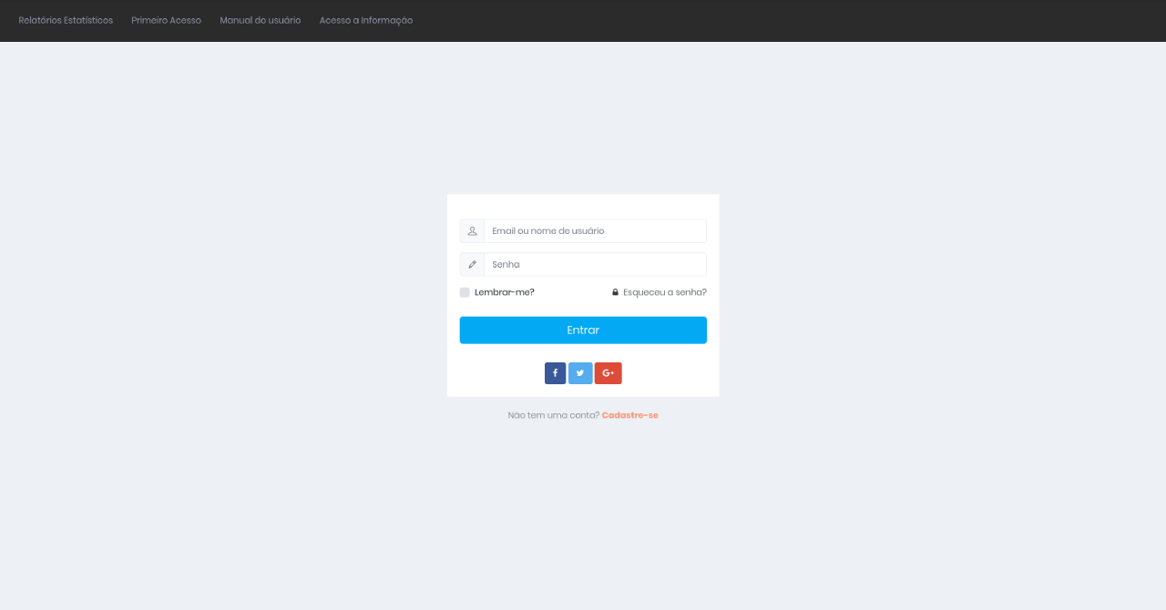 de usuário e senha de acesso, os campos com * são obrigatórios;